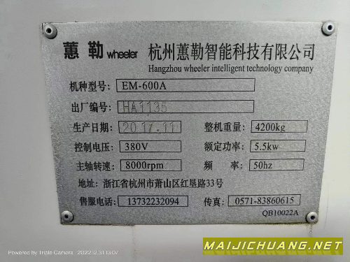 出售:2017年11月杭州惠勒600加工中心.