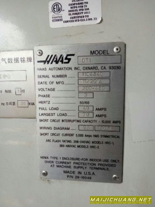 出售2014哈斯钻攻中心