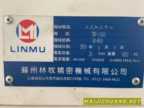 出售:2019年苏州林牧1160立式加工中心.